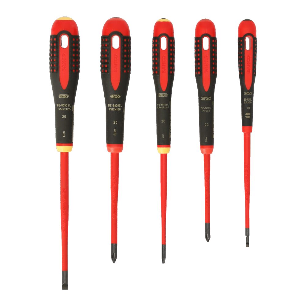 - Includes 5 pieces of insulated VDE ERGO™ screwdrivers with slim blades (reduced blade diameter)